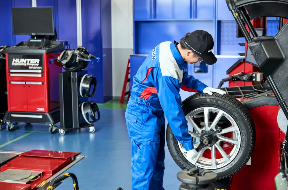 タイヤとホイールの重量バランスを高精度で測定・調整する機器です。偏りを補正することで走行中の振動を抑制し、快適な乗り心地を実現。さらにハンドリング性能の向上やタイヤの寿命延長にも寄与します。